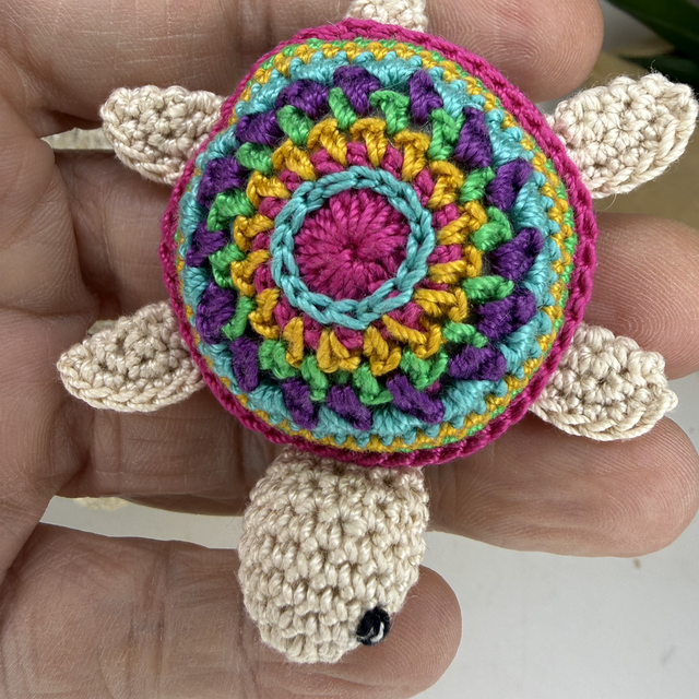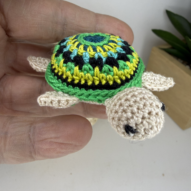 adorable porte clé tortue réalisé entièrement à la main en micro crochet . Le micro crochet permet de travailler tout en finesse et de bien souligner les détails.